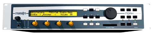 Noah is available in both rackmount and keyboard versions. The keyboard offers two 2x40 indicator displays (the rack module has one) and 16 combined rotary encoder/pushbutton controls for performance control (rack version: four). Both versions are equipped with stereo analog inputs and outputs, 8 individual outputs in ADAT format, MIDI In/Out/Thru, a USB port, and a slot for Compact Flash data storage. Hardware Options The "Doubler" hardware expansion doubles the power of the Noah synthesis engine. The "Transporter" Sampling Option implements a 64MB sample player which enables Noah to additionally provide "virtual expanders". By assembling Akai and Soundfont samples, you can also create your own virtual expanders - and so access your personal sounds directly from Noah. Virtual expanders can be stored on Compact Flash and reloaded into the keyboard's Sample Player. Internet and Computer Integration Although Noah does not