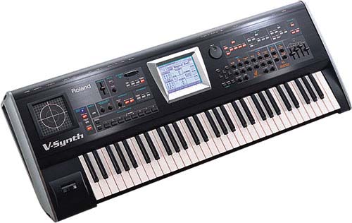ROLAND V-Synth ![]() This 61-note instrument uses multiple oscillator technologies powered by VariPhrase technology including user sampling to create new sounds with independent control over a waveform pitch, time and formant. Flexible COSM filtering, an advanced arpeggiator and a host of realtime controllers including the TimeTrip Pad give musicians unlimited control over their sounds. The V-Synth is based on two variable oscillators that use three sound generation techniques. The PCM oscillator uses Roland VariPhrase technology for independently manipulating the pitch, time and formant of the over 300 preset or user-sampled waveforms in a synthesizer. A new Time Trip functio gives users the freedom to experiment with a waveform time aspect in any way desired speeding a waveform up, slowing it down, or freezing it at any point. Analog Modeling is the second oscillator type. It provides nine traditional waveforms, strengthened with Roland latest modeling technology to sound more fat and warm . The third oscillator type is External Audio Processing, which allows any external sound to be used as a synth waveform. All oscillator types can be mixed and layered in several ways, or modulated using FM, ring mod and hard sync. The V-Synth ound engine can be configured in several different ways by choosing from preset Structure types just like a semi-modular synth. Front-panel Structure buttons make it easy to dive in, while a host of knobs, sliders and buttons offer direct access to vital sound parameters. More detailed parameters can be edited quickly using the large touchscreen, which even responds to dragging motions. New COSM processors handle everything from modeled analog filtering to entirely new sound-shaping tools like polyphonic guitar amp modeling, a Wave Shaper, Resonator and unique Side Band Filter capable of pulling out the sharper, metallic content of sounds. V-Synth also provides a dedicated reverb, chorus, and 41 multi-effects algorithms for global effects processing. With the TimeTrip Pad, players can use their fingertip to scan a waveform forward and backward. Twin D Beams make it easy to modify a range of controllers using infrared ight beams. A powerful arpeggiator creates instant phrases and motifs, and can even be used to modulate sound parameters. With its choice of analog and digital I/O, the V-Synth makes it easy to sample custom waveforms for use in the variable oscillator (resampling is also supported). Users can also exchange .WAV/AIFF files via the built-in USB port, which also works for MIDI. All Preset Patches are fully re-writeable; sounds can also be saved via USB to a computer or to an optional PC card. And with Roland exclusive V-LINK technology, users can trigger and manipulate video clips using the V-Synth keyboard, bender and TimeTrip Pad when used with the Edirol DV-7PR Digital Video Workstation (sold separately). Twin D Beams provide expressive realtime control using infrared beams of light, great for performance. Connections to the V-Synth include a stereo Mic/Line input, stereo Main and Direct outputs, coaxial and optical digital I/O, a stereo Headphone jack, Hold Pedal jack, two Control Pedal jacks, MIDI In/Out/Thru, and a USB port.