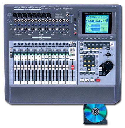 ![]() Features: Self-contained 24-track/24-bit/96kHz digital recording workstation with built-in CD-RW drive 80GB hard drive 24-track playback; 16-track simultaneous recording with 384 V-Tracks "Drag-and-drop" control using included mouse; also accepts ASCII keyboard (optional) 64-channel, fully automated digital mixer with 17 motorized faders Professional-quality connections including 8 XLR/16 balanced TRS inputs 2 stereo effects processors (expandable to 8 stereo, 16 mono) including COSM Mic, Speaker and Guitar Amp Modeling, plus Mastering Tool Kit 24-voice Phrase Pads for triggering and arranging samples New CD Capture function for importing audio and .WAV files Dual R-BUS ports for expandable I/O in a variety of analog and digital formats; SMPTE and Word Clock input VGA Video Output for