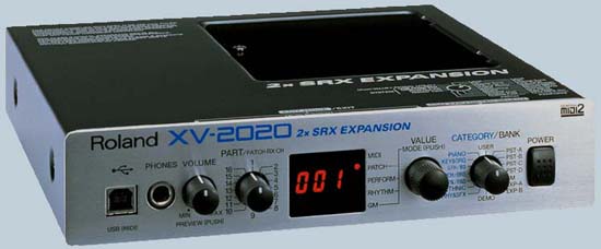 A True XV-Series Synth At the heart of this half-rack module is Roland's advanced synthesis engine based on a powerful 4-Tone architecture with stereo waveforms per Tone and expressive Matrix Control. There are 1,083 high-quality waveforms in internal memory (equivalent to 64MB), giving the XV-2020 a broad range of sounds that are further enhanced via onboard reverb, chorus and a choice of 40 multi-effects. Edited sounds can be saved to User memory. Expandable Design This half-rack module can hold up to 192MB of waveforms by adding two optional SRX-Series Wave Expansion Boards. These boards each contain 64MB of waveforms and hundreds of presets: from grand piano sounds or drums to collection of dance sounds. Easy USB Connectivity With its built-in USB port the XV-2020 simplifies everything from MIDI connections to sound editing. Just connect a USB cable from the &endash;2020 to your computer, install the included driver software and you're set. This feature also makes the XV-2020 a companion to laptop-based systems since no external MIDI interface is required. And you get 16-part multitimbral synth . Editing Software Included Following Roland's latest trend of integrating hardware and software, the XV-2020 includes a powerful editing program for Mac or PC. Just install the software from the included CD-ROM, make sure the USB cable is connected, and you can edit everything from multimode filters to envelopes and effects, or alter the semi-modular Structure Types, using a sleek graphic interface.